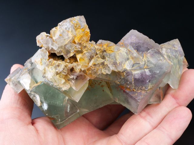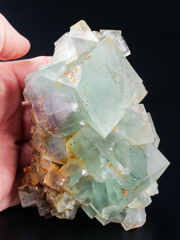 These fluorites came out in modest numbers for only a short time, then became scarce and expensive.These fluorites came out in modest numbers for only a short time, then became scarce and expensive. It is quite hard now to find nice-looking, undamaged crystals on matrix, and the Mongolian dealers value them highly. This fine, 3-dimensional specimen has translucent, green crystals to 4.4 cm with pretty phantoms. Though the crystals are clean and in good condition, a few show damage upon close inspection, but they are minor compared to the relative size of the specimen.