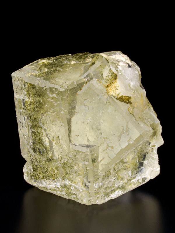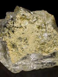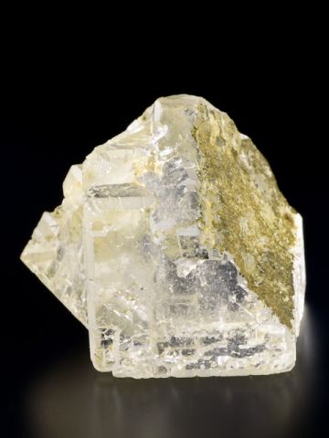 Transparent colorless fluorite crystals with parts of white calcite crystals.Transparent colorless fluorite crystals with parts of white calcite crystals. In pristine condition.