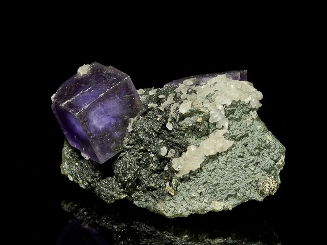 A wonderful new specimen, with gem blue cubic fluorite crystals to 13 mm on edge scattered over a black matrix.A wonderful new specimen, with gem blue cubic fluorite crystals to 13 mm on edge scattered over a black matrix. As seen in the photos, main crystal appears in good condition, except second crystal that is incomplete. Quite aesthetic and attractive!