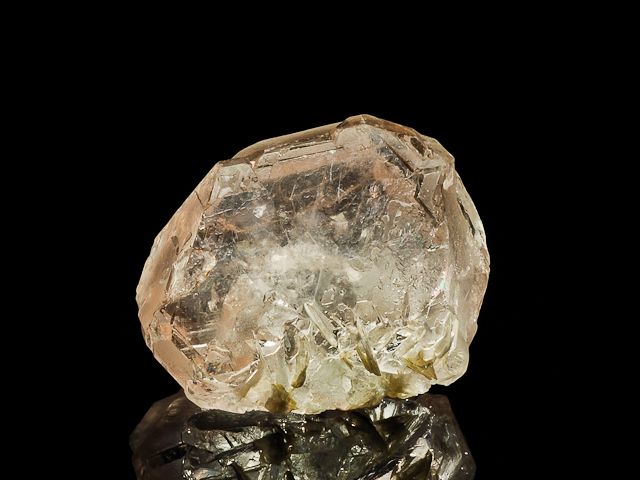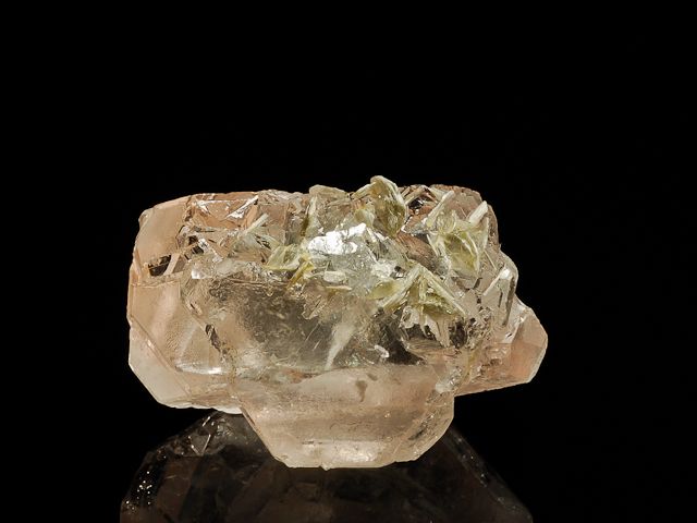 A gorgeous cluster of pristine, translucent, lightly etched and beautifully pink complex fluorite crystals with a bit of muscovite from Nagar.A gorgeous cluster of pristine, translucent, lightly etched and beautifully pink complex fluorite crystals with a bit of muscovite from Nagar. An excellent glass-like modified Fluorite crystals "floater" from a gem bearing pegmatite source, with almost no visible damage.