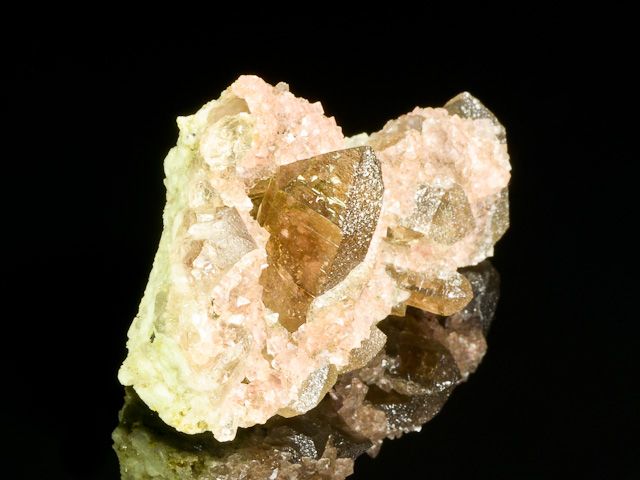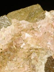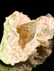 Krystaly záhnědy na matrix pokryté jemnými růžovými oktaedry fluoritu z vysokohorské lokality Leschaux glacier.Krystaly záhnědy na matrix pokryté jemnými růžovými oktaedry fluoritu z vysokohorské lokality Leschaux glacier. Největší krystal fluoritu měří 4 mm! Zajímavá a estetická ukázka, která patří k zajímavostem a mineralogickým lahůdkám evropských lokalit.