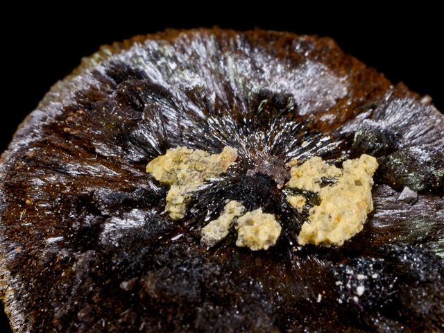 Sprays of radiating brown to black Goethite needles forming hemispheres to 3.1 cm. across.Sprays of radiating brown to black Goethite needles forming hemispheres to 3.1 cm. across. New material from pegmatite no. 597. The colour of the goethite is darker than it may come across in the photographs. In excellent condition.