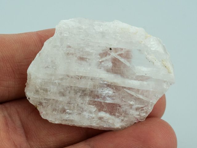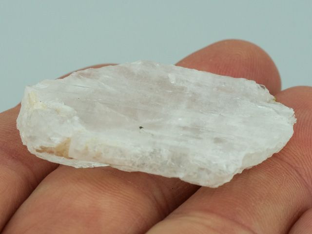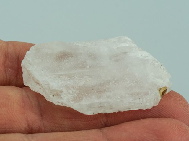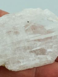 Velmi zajímavý krystal hambergitu, který měří 4,2 cm, není ukončený s lesklou hlavní stranou a matnější stranou opozitní.Velmi zajímavý krystal hambergitu, který měří 4,2 cm, není ukončený s lesklou hlavní stranou a matnější stranou opozitní. Hambergit je vzácný minerál vyskytující se v drahokamových pegmatitech. Tento plochý krystal je průsvitný a nadprůměrně velký. Krystaly hambergitu jsou známy pouze z několika málo lokalit na světě.