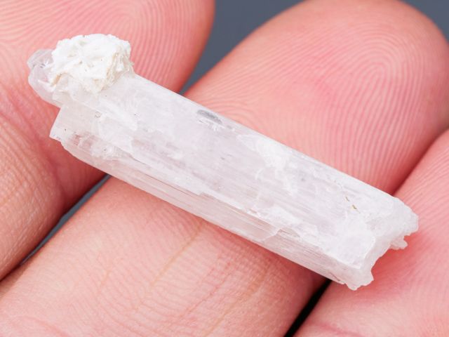 Krystal hambergitu, který měří 3,1 cm, je částečně ukončený s matným povrchem. Hambergit je vzácný minerál vyskytující se v drahokamových pegmatitech. Tento protáhlý krystal je průsvitný. Ukončení je zakalené a drobným kontaktem nejspíše od krystalů slídy. Krystaly hambergitu jsou známy pouze z několika málo lokalit na světě.