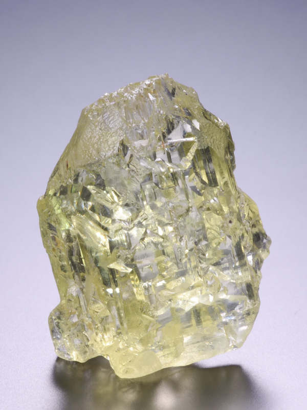 Ukončený krystal heliodoru z jedinečné lokality Volyň. Nepoškozený lesklý krystal s typickým leptáním je v gemy kvalitě. Velice estetický vzorek málo častého minerálu ze staré a klasické evropské lokality.