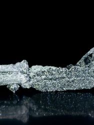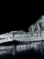 Estetická pseudomorfóza hematitu po magnetitu tvořená kovově šedými, lesklými, skeletickými krystaly z argentinské lokality Payun Matru volcano.Mimořádně estetická pseudomorfóza hematitu po magnetitu tvořená kovově šedými, extra lesklými, skeletnatými (kostrovitými) krystaly z argentinské lokality Payun Matru volcano. Největší krystal dosahuje velikosti 8,4 cm! Opravdu povedená ukázka z dané lokality, která ozdobí i tu nejlepší sbírku.