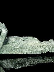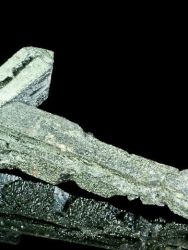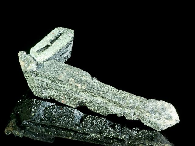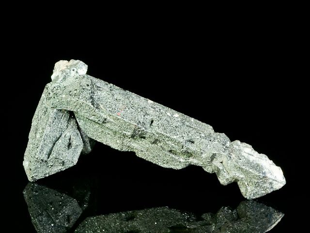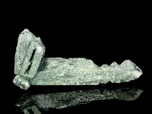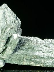 This piece features a large and exquisitely hoppered octahedron perched on a small cluster of crystals.This piece features a large and exquisitely hoppered octahedron perched on a small cluster of crystals. The large crystal measures 7.0 cm in length. It has great luster and a dark gray metallic color. The symmetry is striking, in person all the more so. No damage.