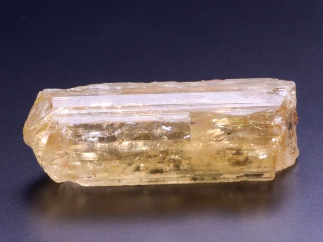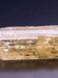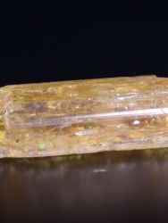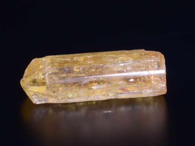 Estetický vzorek ukončeného krystalu imperial topazu. Krystal topazu měří 2,7 cm, na danou lokalitu je čistý a má medově zlatavou barvu. Ukončení je velmi estetické. Poškození hran prizmatu je způsobeno těžbou - zohledněno v ceně. Pěkný vzorek z proslulé lokality Ouro Preto.