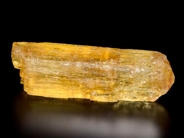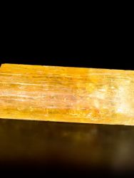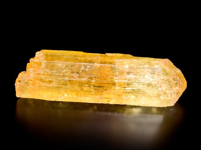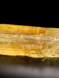 Exkluzivní vzorek ukončeného krystalu topazu. Krystal topazu měří 5,4 cm, na danou lokalitu je velice čistý a má úžasnou medově zlatavou barvu. Krystal je až na strženou hranu u ukončení (14x3 mm) v dobrém stavu - vzhledem ke způsobu těžby je toto na první pohled hůře postřehnutelné poškození běžnou součástí obdobného materiálu. Top velký vzorek!