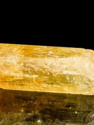 Exkluzivní vzorek ukončeného krystalu topazu. Krystal topazu měří 4,4 cm, na danou lokalitu je velice čistý a má úžasnou medově zlatavou barvu. Krystal má několik miniaturních jen těžce postřehnutelných setření na hranách - vzhledem ke způsobu těžby je toto těžce viditelné poškození běžnou součástí obdobného materiálu. Boční strana byla částečně kontaktní. Top velký a barevný vzorek!