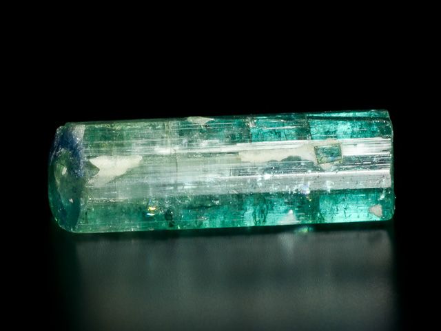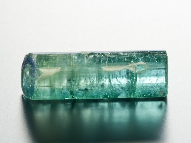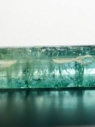 Pěkný krystal indigolitu z významné brazilské lokality Pederneira Mine. Krystal má jedinečnou modrou barvu a netradiční ukončení v plochém provedení. Sběratelsky zajímavý kámen.