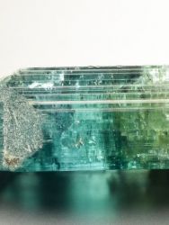 This is an indicolite terminated crystal with good luster and translucence.This is an indicolite terminated crystal with good luster and translucence. The top portion of the crystal is a rich blue color which becomes lighter toward the base. No damage.