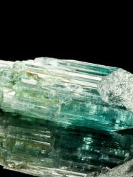 This is an indicolite terminated crystal with good luster and translucence.This is an indicolite terminated crystal with good luster and translucence. The top portion of the crystal is a rich blue color which becomes lighter toward the base. No damage.