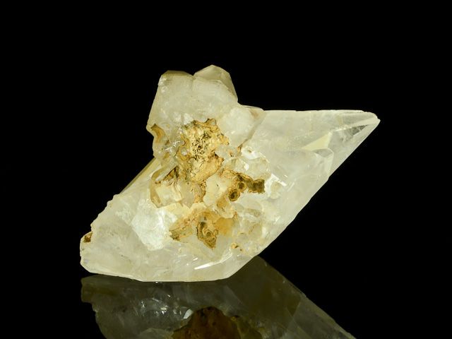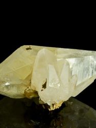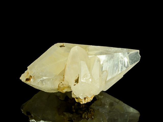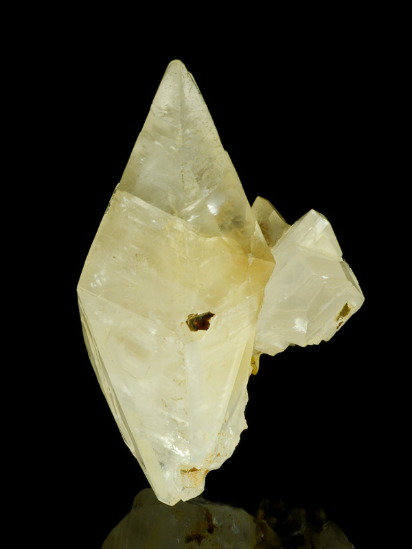 A beautiful doubly-terminated calcite crystal from Russia! Doubly-terminated transparent colorless scalenohedral calcite crystals with remnants of limestone on the bottom. The calcite crystal has textured crystal faces with glassy luster.