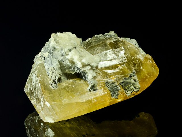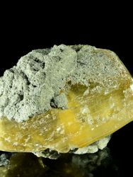 Medově žlutý, místy lesklý, průsvitný krystal kalcitu z kazachstánské lokality Sokolovskoe Iron Mine.Medově žlutý, místy lesklý, průsvitný krystal kalcitu z kazachstánské lokality Sokolovskoe Iron Mine. Kalcit je oboustranně ukončený a v dobrém stavu. Na vzorku je jen velmi málo těžce viditelných setření. Příjemná medově žlutá barva z tohoto vzorku dělá zajímavý vzorek do sbírky.