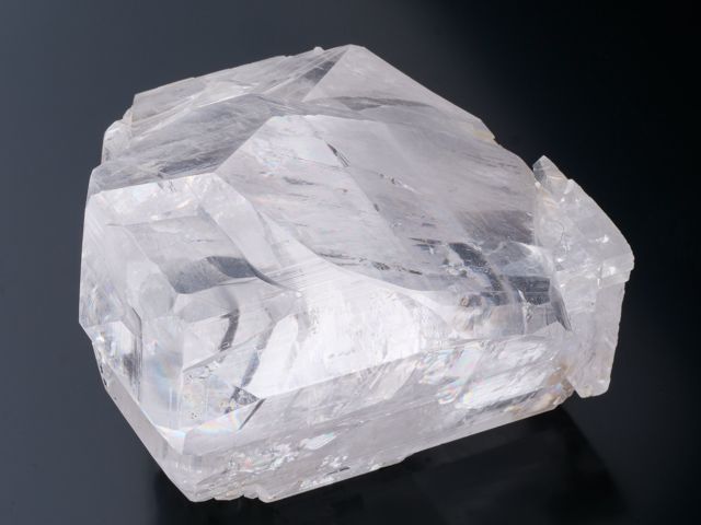 A beautiful doubly-terminated calcite crystal from Russia! Doubly-terminated transparent colorless scalenohedral calcite crystals with remnants of limestone on the bottom. The calcite crystal has textured crystal faces with glassy luster.