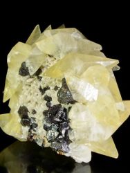 Calcite scalenohedrons to 7.0 cm richly and attractively cover the mounded matrix of highly lustrous, partially gemmy, sphalerite crystals and dolomite crystals from the famous Tri-State District.Pretty, glassy, translucent, calcite scalenohedrons to 7.0 cm richly and attractively cover the mounded matrix of highly lustrous, partially gemmy, sphalerite crystals and dolomite crystals from the famous Tri-State District. Some of the calcites are doubly terminated. A fine 360-degree combination specimen, with only a few broken calcites on the periphery and in the centre of cluster. Classic old-time material from the Rukin Jelks Collection.