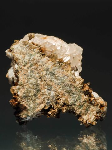 An aesthetic specimen of Dalnegorsk calcite and quartz crystals showing a rare habit - hexagonal dipyramids.An aesthetic specimen of Dal’negorsk calcite and quartz crystals showing a rare habit - hexagonal dipyramids, no prisma. The crystals have sharp faces, and a gleaming luster.