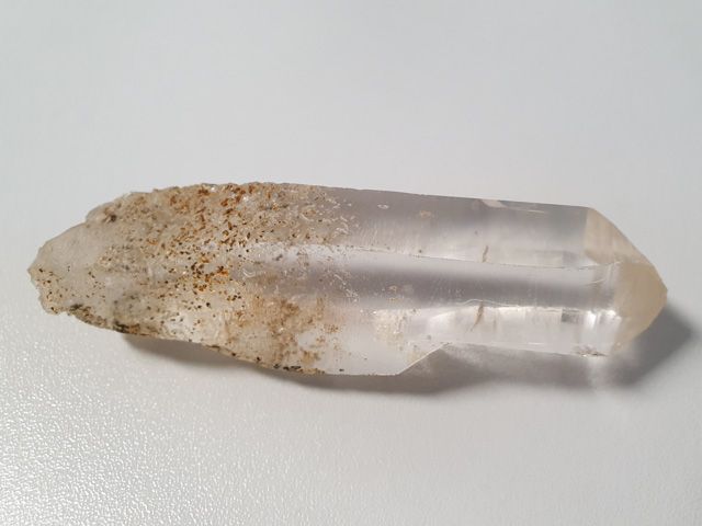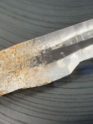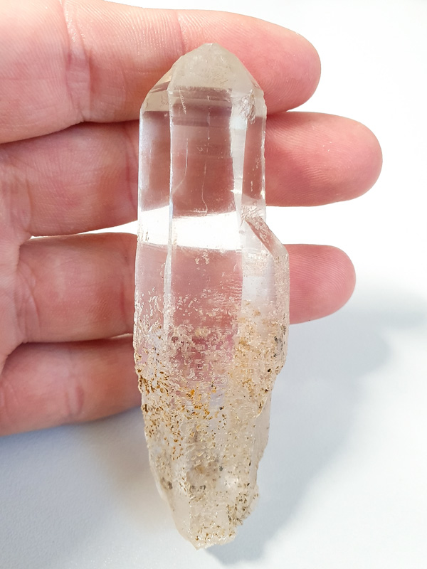 This is amazing stuff - lustrous quartz crystal. This terminated quartz crystal has and great luster, superb growth marks and great clarity. Top of terminations is chipped. New find 2022.