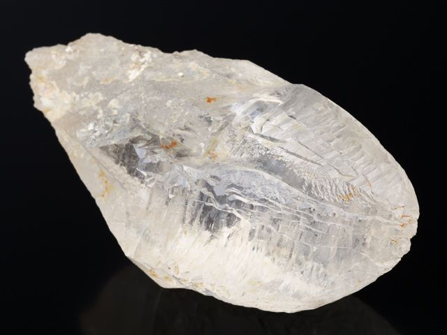 Krásně tvarovaný zcela čistý krystal křišťálu z lokality Mondo v Tanzánii. Čistota a vysoký lesk jsou pro tuto lokalitu charakteristické. Zajímavostí a předností tohoto vzorku je hydrotermálně vyleptaný povrch hran prizmatu a především ukončení.