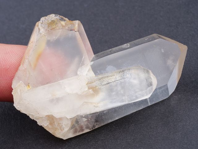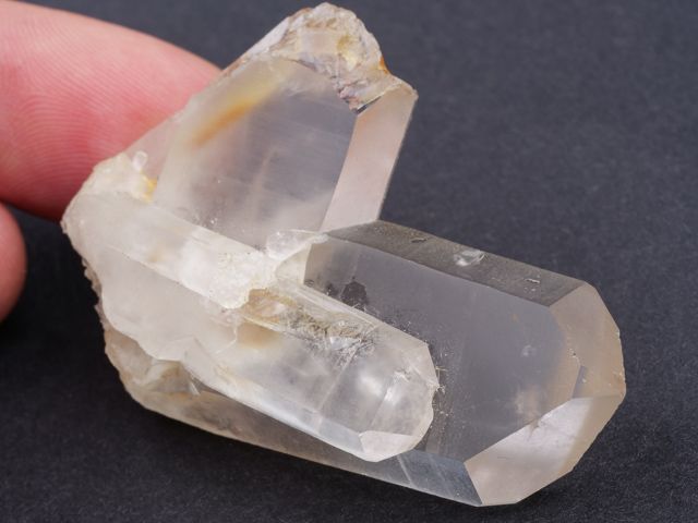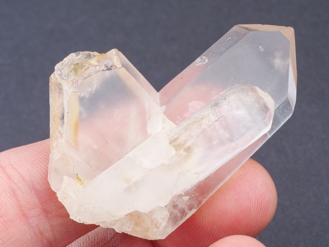 Zajímavá drúza křišťálu v takzvaném japonském srůstu z lokality Ambatofinandrahana na Madagaskaru. Jeden z krystalů má poškození na hraně ukončení vzorek jako takový má drobné setření, jinak vše v naprostém pořádku (zohledněno v ceně).