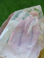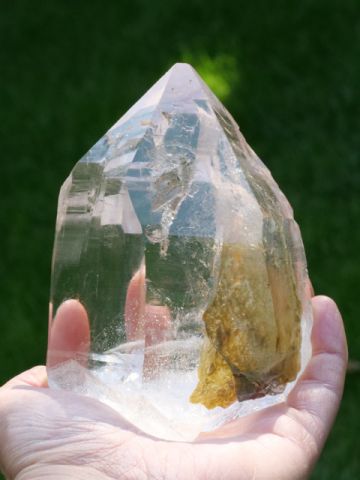 Krásně tvarovaný velmi čistý krystal křišťálu z lokality Kullu Valley. Čistota a vysoký lesk jsou pro tuto lokalitu charakteristické. Ukončený krystal má jen dva malé oťuky na nejspodnější hraně. Trhlina po straně vyplněná barvou z jílové zeminy.