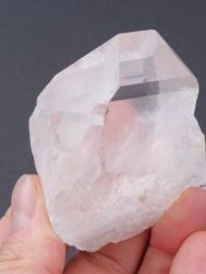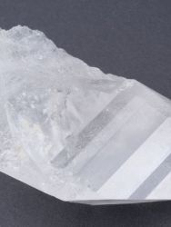 Velmi čistý krystal křišťálu z Afriky. Čistota a vysoký lesk jsou to co dělají tento vzorek zajímavým. Ukončený krystal má drobná setření v hranách ukončení do velikosti 0,5x0,2 mm. V podstatě se jedná o nepoškozený krystal.