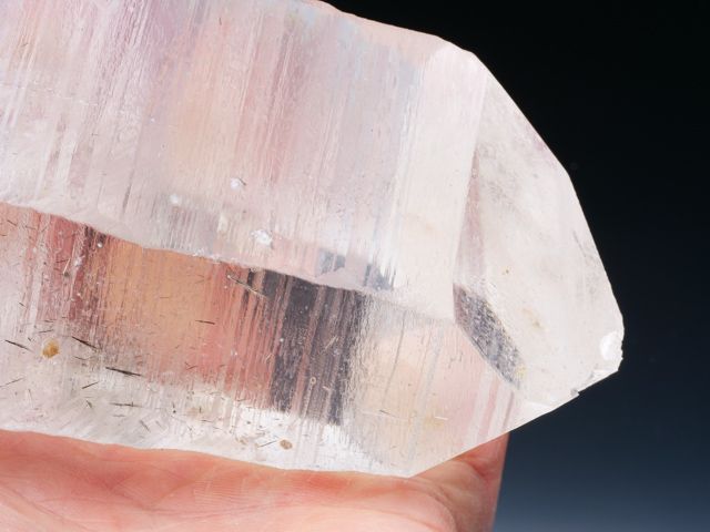 This is amazing stuff - lustrous quartz crystal. This terminated quartz crystal has and great luster, superb growth marks and great clarity. Top of termination and side part are chipped.
