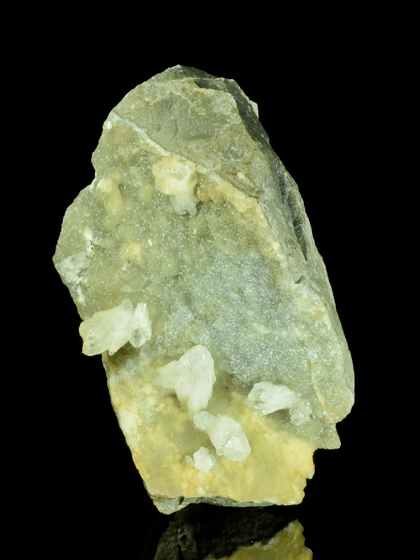 Hezká drúza s několika krystaly křišťálu posazených na chalcedonovém povlaku z netradiční italské lokality. Největší z krystalů dosahuje velikosti 1,6 cm. Zajímavý vzorek do sbírky.
