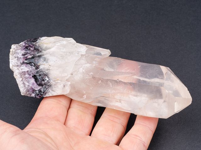 Zajímavý vzorek křišťálu ve spojení s ametystovým základem. Předností vzorku je velikost hlavního krystalu v kombinaci s ametystovým základem celé podložky. Hlavní krystal má poškození (při vytahování z žíly nebyl nejspíš prostor a chuť těžaře vyjmout vzoZajímavý vzorek křišťálu ve spojení s ametystovým základem. Předností vzorku je velikost hlavního krystalu v kombinaci s ametystovým základem celé podložky. Hlavní krystal má poškození (při vytahování z žíly nebyl nejspíš prostor a chuť těžaře vyjmout vzorek bez poškození - tato skutečnost byla zahrnuta do výsledné ceny), ale nejedná se o nic fatálního (vše zachyceno na fotkách). Velký vitrínový kus do sbírky - komu nevadí poškození vzorku získá efektní ukázku afrického křemene v kombinaci křišťál x ametyst za odpovídající cenu.
