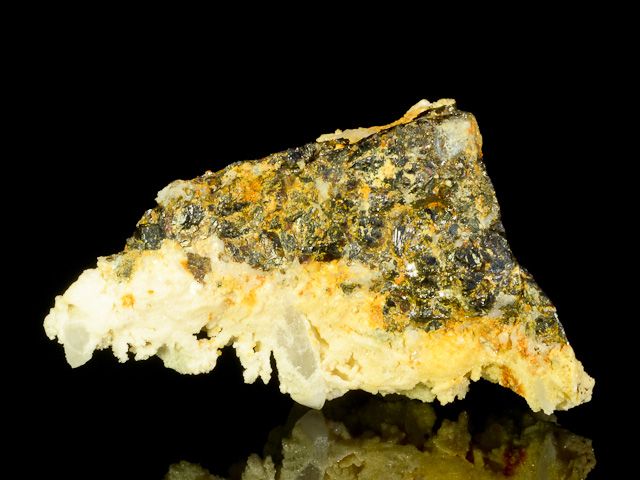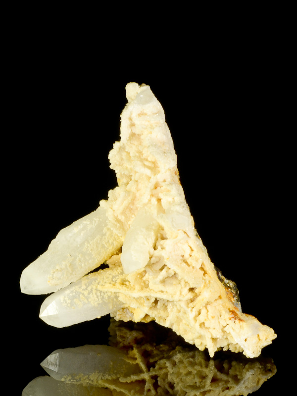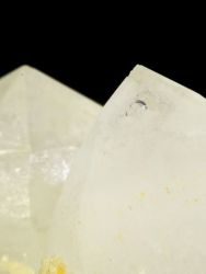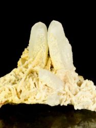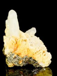 This is a lovely and highly aesthetic piece of quartz and barite on matrix.This is a lovely and highly aesthetic piece of quartz and barite on matrix. Most crystals are in perfect condition, clear and nicely arranged. The tabular, yellow barite crystals are pretty all around. Sphalerite matrix provides a nice contrast for this charming piece. The largest quartz crystal has a visible water bubble (size cca 1.5 mm).