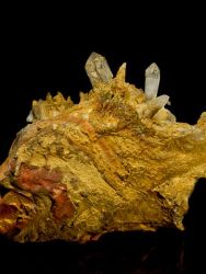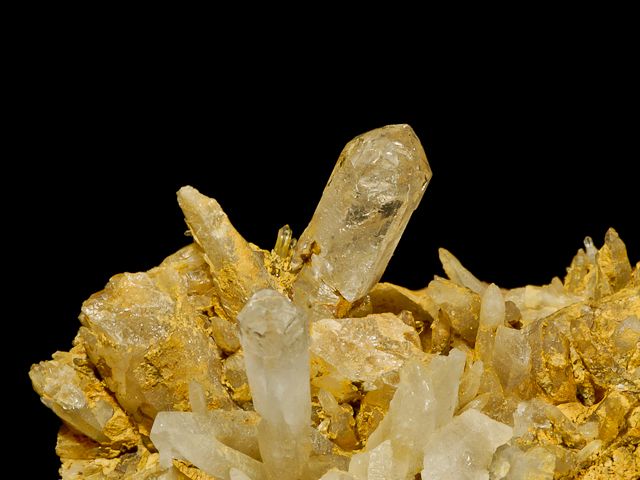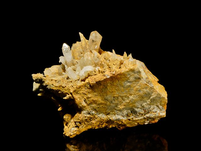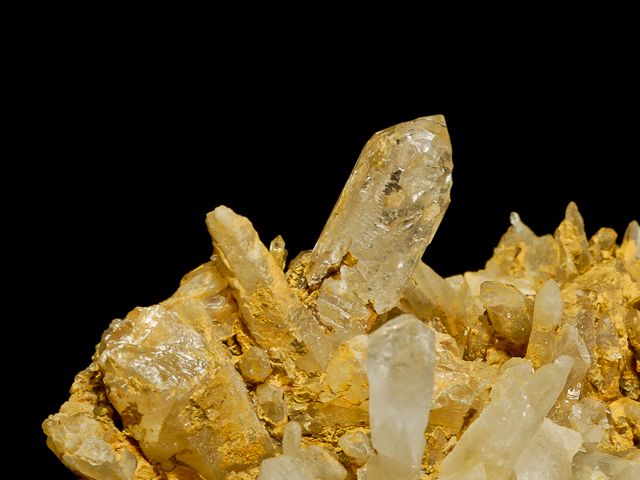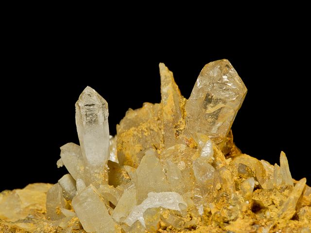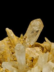 Zajímavá ukázka žezlového křišťálu na podložce z Banské Štiavnice. 1.8 a 1.6 cm velké krystaly vykazují žezlový vývoj. Hlavní krystaly jsou nepoškozeny, ostatní jsou povětšinou kontaktní.