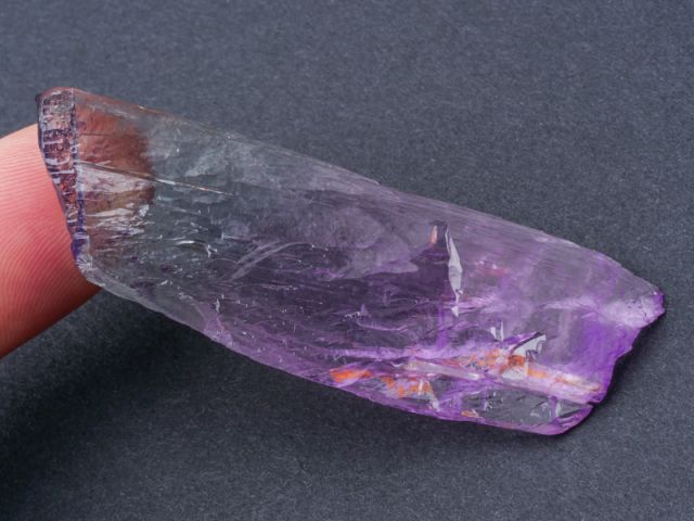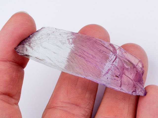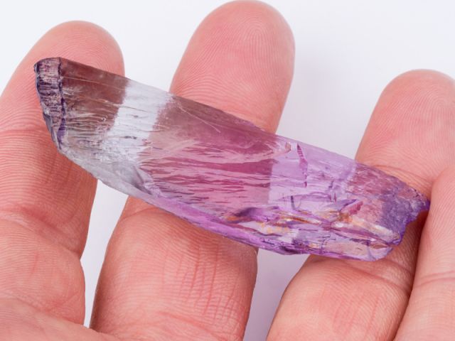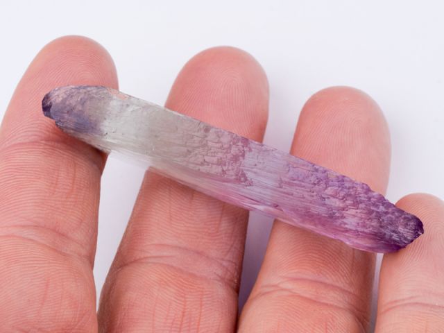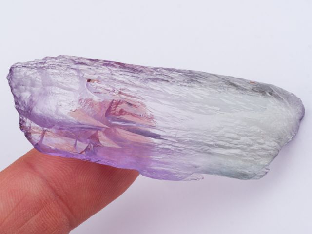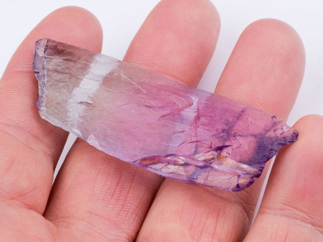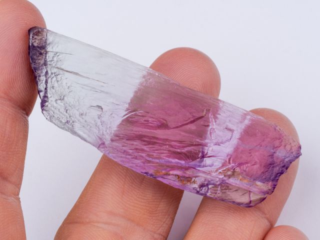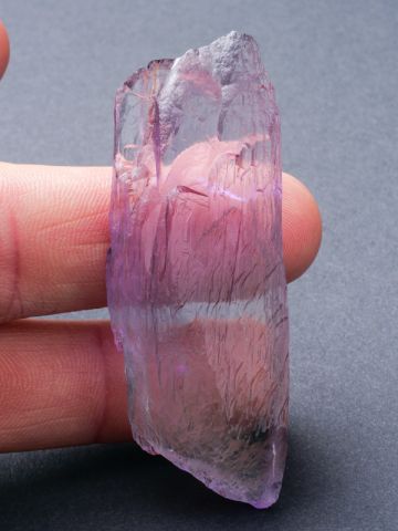 Hezký oboustranně ukončený krystal kunzitu z lokality Maharitra. Krystal má super intenzivní a sytou růžovou barvu, luxusní ostré ukončení a velmi vysokou čistotu. Velmi lesklý nepoškozený zonální krystal je vlastně tzv. plovákem. Kromě sytosti je u tohoto vzorku nejzajímavějším aspektem lokalita. Známe velké množství kunzitů z Afgánistánu - tyto zaplavily trh v různých kvalitativních třídách (nejvíce v těch nižších), ale na kámen z Madagaskaru lze narazit opravdu výjimečně.