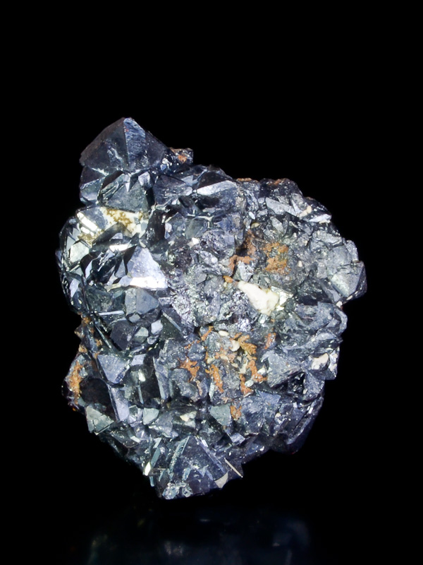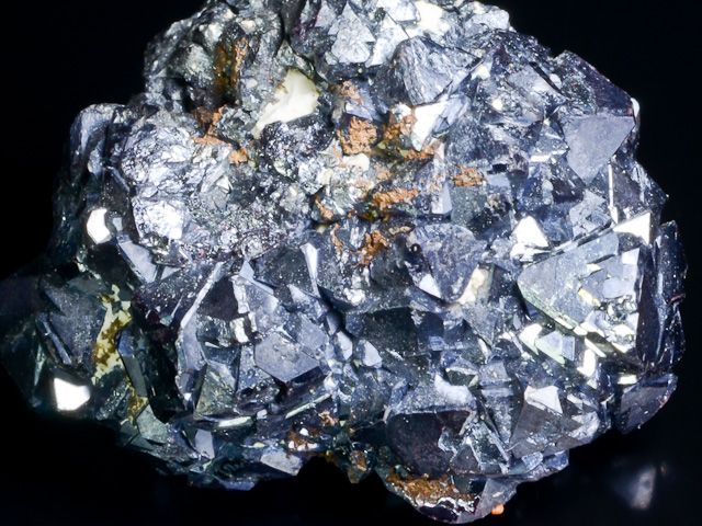 Srostlice stovek drobných mimořádně lesklých krystalů kupritu druhé generace s vysokým obsahem stříbra.
