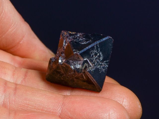 The fine sample of cuprite from Rubtovskiy Mine. Lustrous metallic octahedral cuprite crystals with no matrix attached. This cuprite has a markedly more metallic appearance and show some red translucency like the highly lustrous specimens. Size of the largest crystal is 2.9 cm.