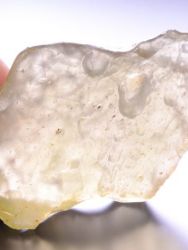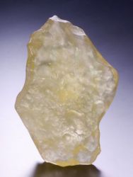 Between the towering dunes of the Eastern Great Sand Sea of Egypt are long narrow gaps where bedrock is exposed. Libyan desert glass is generally yellow in color. It can be very clear or it can be a milky, even bubbly light yellow. Some fragments have dark bands and swirls of brownish material. It is in these dark areas that some of the melted comic body is believed by some to be preserved. Libyan Desert Glass was used in ancient times as a gem stone for the Pharaohs and remains a highly prized impact glass for collectors today.