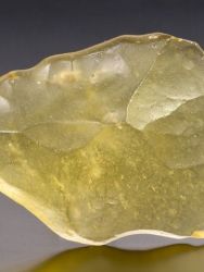 Between the towering dunes of the Eastern Great Sand Sea of Egypt are long narrow gaps where bedrock is exposed. Libyan desert glass is generally yellow in color. It can be very clear or it can be a milky, even bubbly light yellow. Some fragments have dark bands and swirls of brownish material. It is in these dark areas that some of the melted comic body is believed by some to be preserved. Libyan Desert Glass was used in ancient times as a gem stone for the Pharaohs and remains a highly prized impact glass for collectors today.