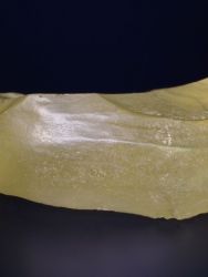 Lovely 53.8 g Libyan Desert Glass Specimen. It has tons of deep regmaglypts like dimples all around - a really neat and interesting piece! There are some dings on the edges.