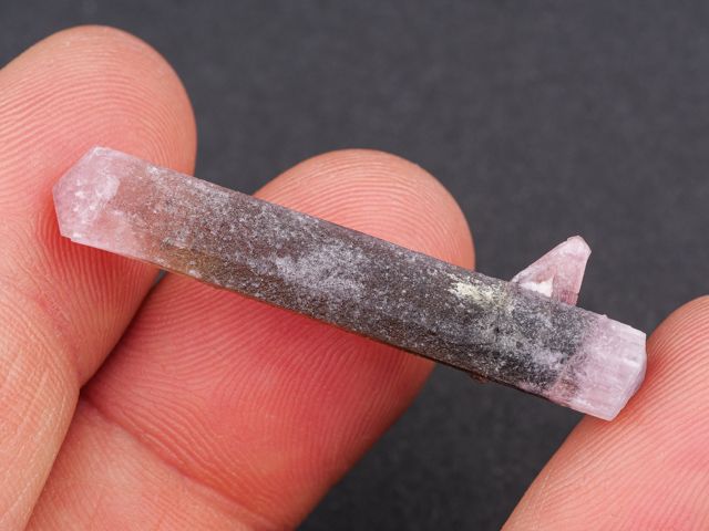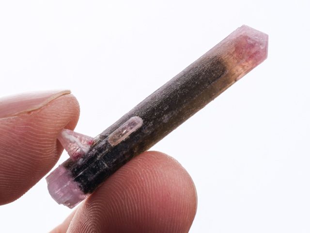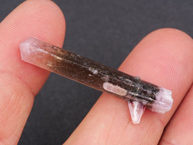 Krásný oboustranně ukončený krystal liddicoatitu z famózní lokality Malkhan. Jedná se o turmalín liddicoatit-elbaitové řady z pegmatitů Sibiře. Lesklý krystal zajímavých barev. Vzorek je bez poškození, ale na jednom místě byl profesionálně slepen a stabilizován. Toto není na první pohled vůbec poznat a je to zahrnuto do výsledné ceny.