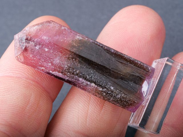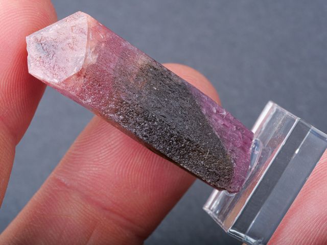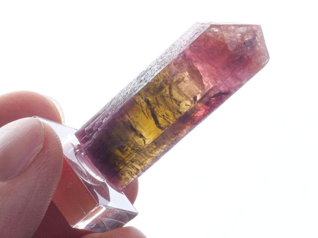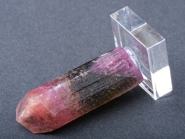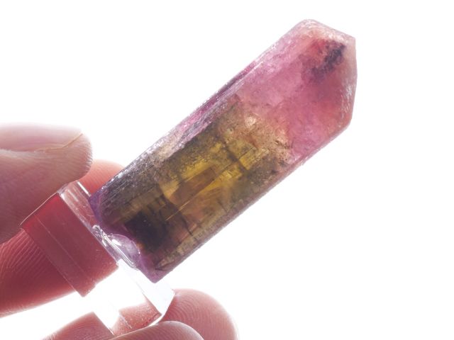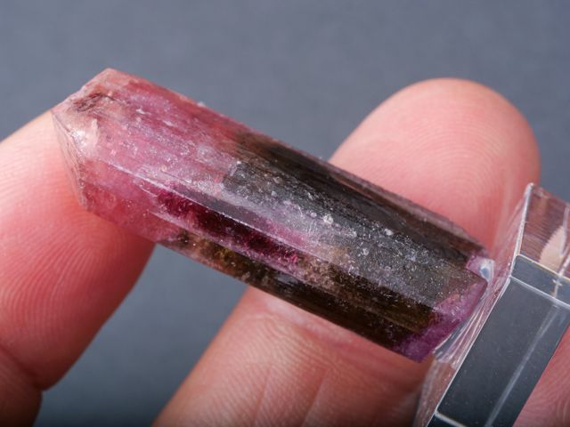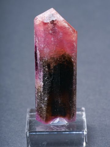 Ukončený krystal liddicoatitu z famózní lokality Malkhan. Jedná se o turmalín liddicoatit-elbaitové řady z pegmatitů Sibiře. Lesklý krystal bez poškození.