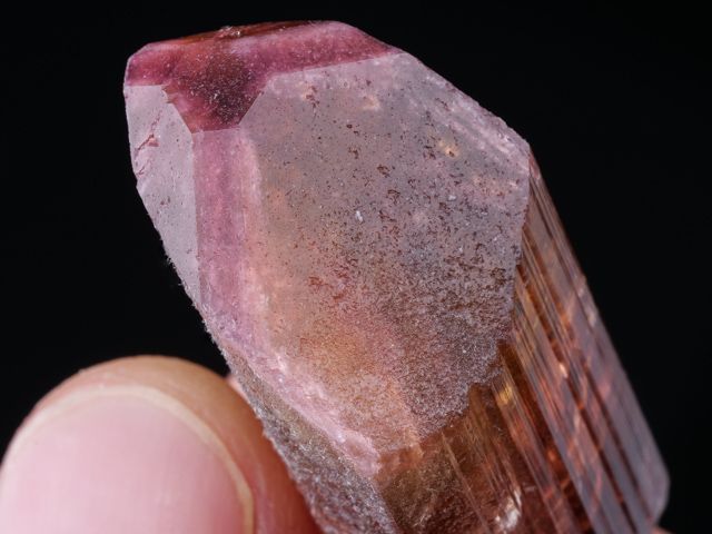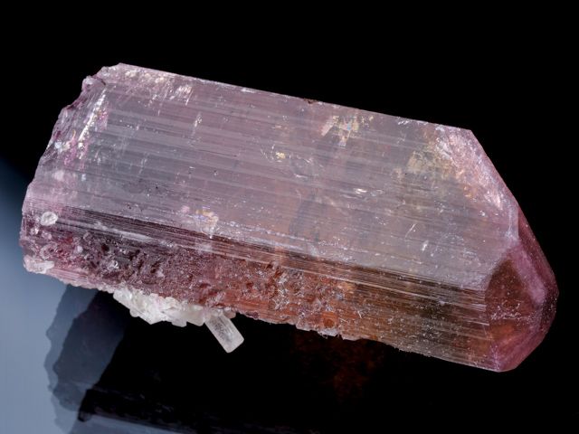 A very nice example of the tourmaline variety Liddicoatite from a find in 2019. It has a beautiful, pink/red color to it. The crystal is lustrous, and terminated.