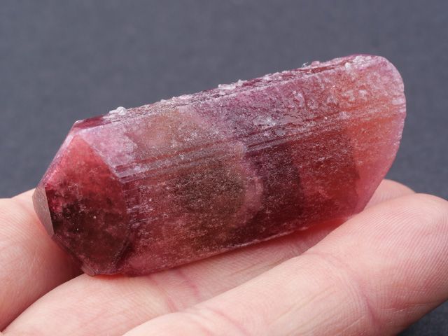 A very nice example of the tourmaline variety Liddicoatite from a find in 2019. It has a beautiful, pink/red color to it. The crystal is lustrous, and terminated.A very nice example of the tourmaline variety Liddicoatite from a find in 2019. It has a beautiful, pink/red color to it. The crystal is lustrous, and terminated.