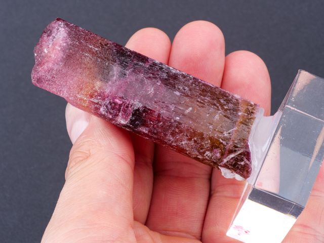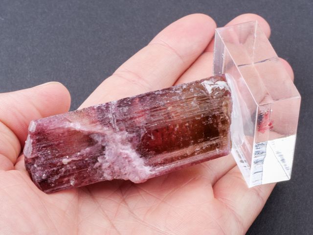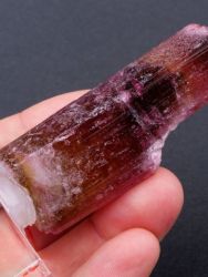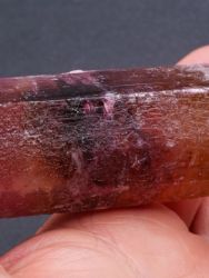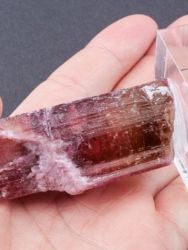 A very nice example of the tourmaline variety Liddicoatite from a find in 2019. It has a beautiful, pink/red color to it. The crystal is lustrous, and terminated.