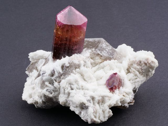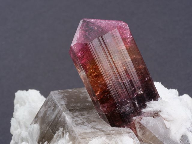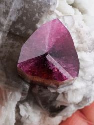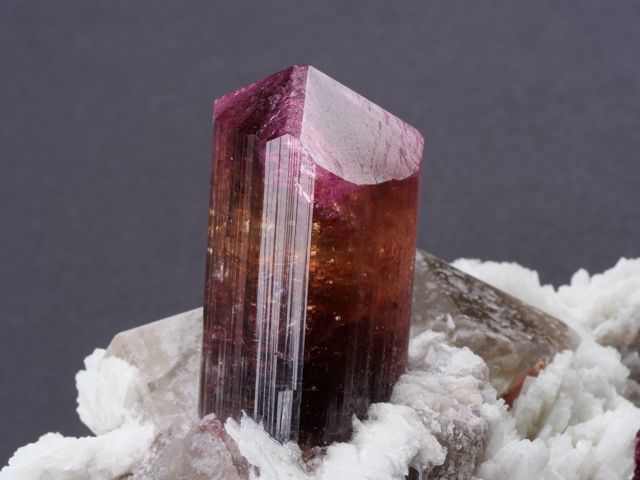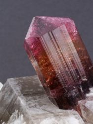 This is a deep yellow-pink, lustorus and terminated liddicoatite crystals on matrix.This is a deep yellow-pink, lustorus and terminated liddicoatite crystals on matrix. 1x repair.