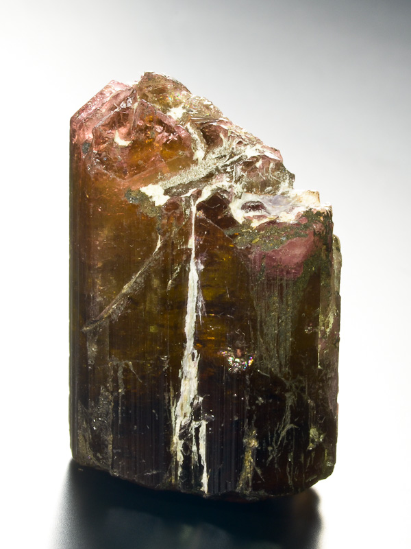 This is a deep yellow-pink, lustorus and terminated liddicoatite crystal. Tourmaline is what Malkhan is famous for, and in my opinion, the polychromes and the purple-pinks represent the finest examples of this material. This is a phenomenal quality for the locality where you do not usually see such gemminess nor such lustre on the crystals with extremely well-bevelled terminations.