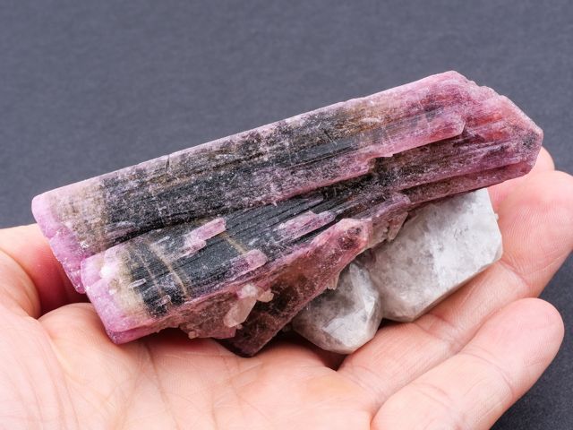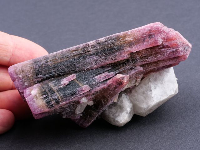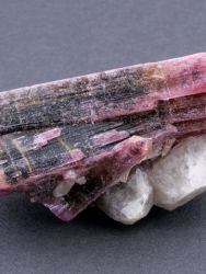 These are a deep yellow-pink, lustorus and terminated liddicoatite crystals on quartz matrix.These are a deep yellow-pink, lustorus and terminated liddicoatite crystals on quartz matrix. Tourmaline is what Malkhan is famous for, and in my opinion, the polychromes and the purple-pinks represent the finest examples of this material. This is a phenomenal quality for the locality where you do not usually see such gemminess nor such lustre on the crystals with extremely well-bevelled terminations.