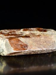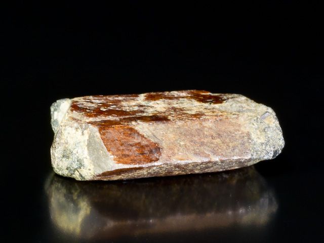 Temně hnědý, skelně lesklý, částečně průsvitný, oboustranně ukončený krystal lorenzenitu.Temně hnědý, skelně lesklý, částečně průsvitný, oboustranně ukončený krystal lorenzenitu, který dosahuje velikosti 26 mm. Jedním ukončením prorůstají malé jehlicovité krystaly egirínu. Zajímavá ukázka tohoto vzácného minerálu, který se až do roku 1947 považoval za jiný vzácný minerál tzv. ramsayit. Lokalita je již dlouhé roky vyčerpána a tak vzorek nabízí mimořádnou možnost rozšířit systematickou mineralogickou sbírku o velmi vzácný minerál a přitom velký oboustranný krystal, kterých bylo vždy jako šafránu i v době největší slávy lokality Flora.