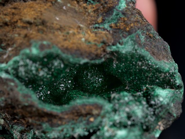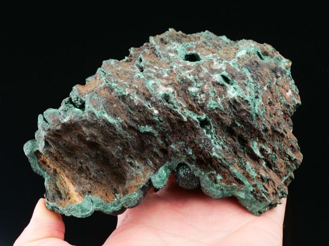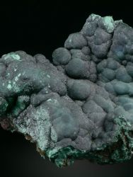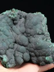 Krásný a kontrastní vzorek malachitu z afrického dolu Star of the Congo. Velká drúza botroidálního malachitu má příjemnou tmavě zelenou barvu a jemný lesk. Velmi pěkný a velký vzorek.