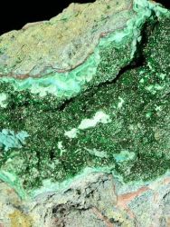 Here is a nice malachite on chrysocolla. The malachite crystals are amazing balls. Very nice combo specimen.