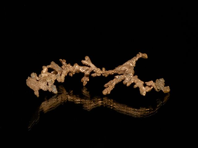 Keříkovitá srostlice krystalů ryzí mědi z Kazachstánu. Jedná se o členitý a ostře krystalovaný vzorek s drobnou patinou, vhodný do sbírky.